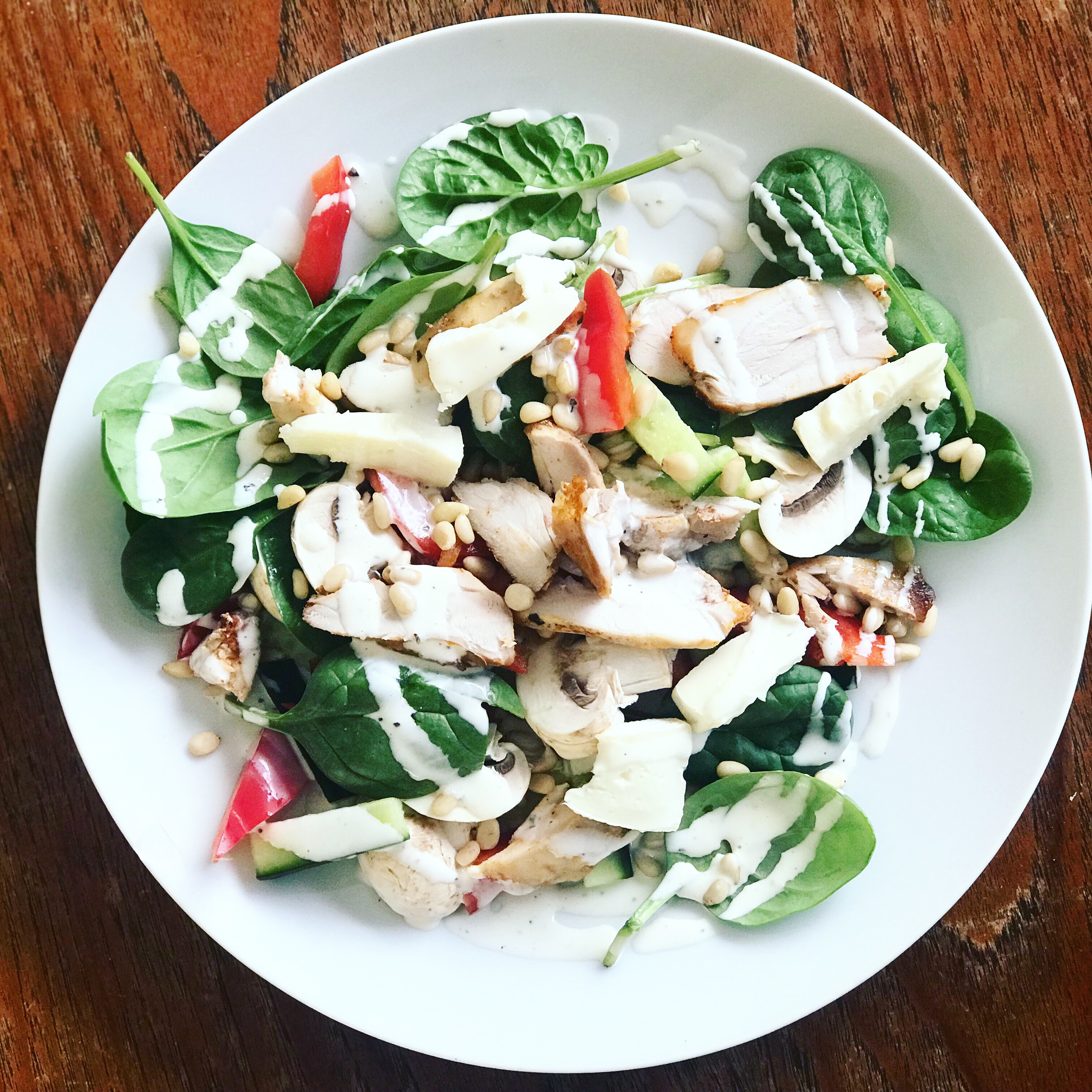 Make sure your plate is at least half vegetables or salad. Veggies are a great way to start any meal because they’re full of vitamins, minerals, antioxidants and health-promoting phytochemicals. But they also have some secret weapons: fibre and water. Fibre and water are known to help fill you up PLUS they improve gut and mental health by feeding the helpful bacteria, improving digestion and even increasing synthesis of our feel good hormones.