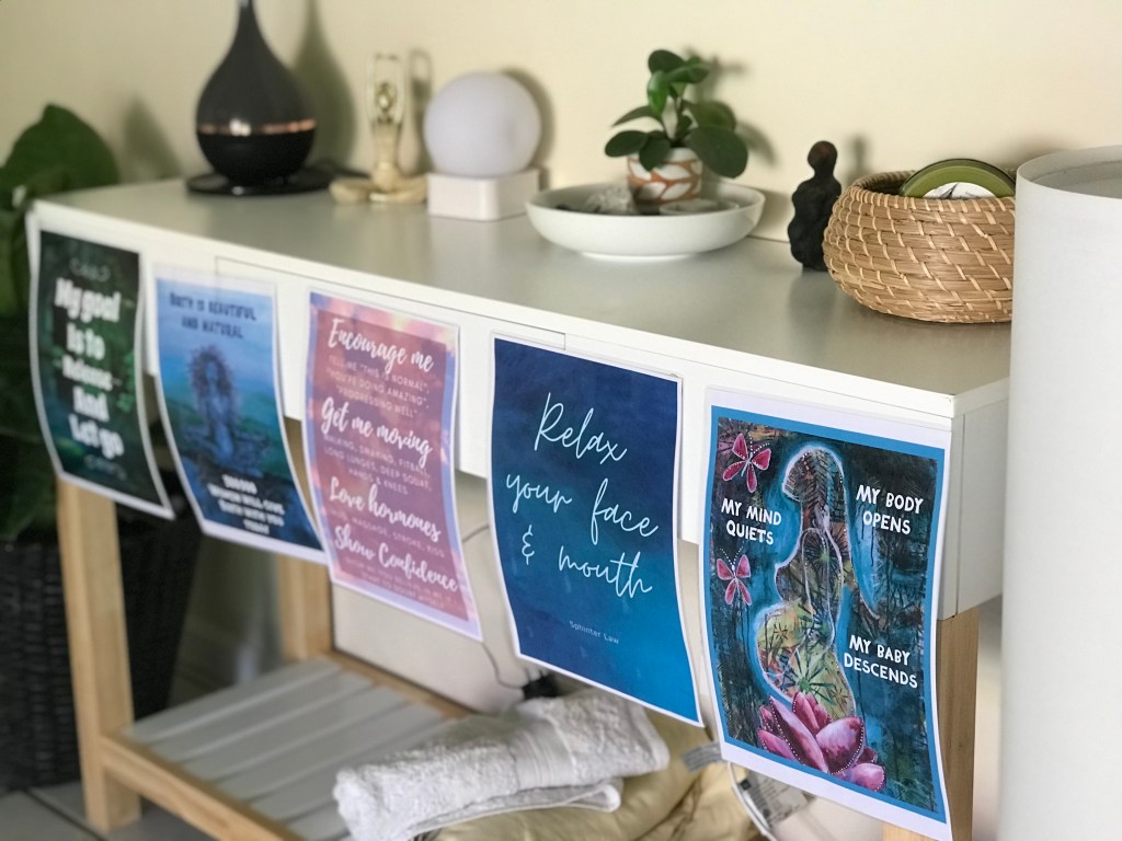I found a dozen affirmations online and had my mum create pretty posters with them which I laminated and stuck all over the walls around my intended birth space at home.